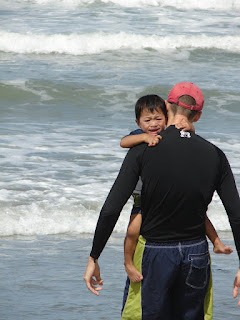 that is an awesome picture! i mean, so sorry, josh, but it is way too funny. poor kid. did he warm up to it?and also, love the new profile picture too. :)