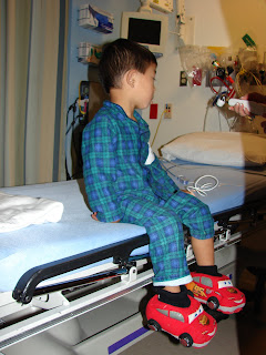 Joshua, who is now a little too old to be fooled about what's going on, had ridden to the hospital wide-eyed and mostly silent. He softly sang along with some of his favorite music and then burst into tears as soon as we turned into the hospital parking lot.